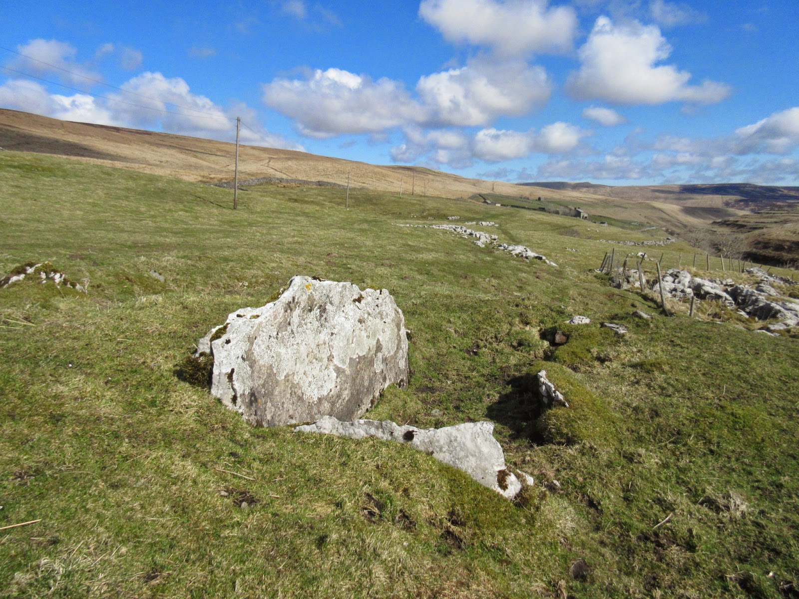 Now, then - see that dark slit below the wall? Well - that's Upper Hesleden Cave 2. This interesting cave is 600 metres long and involves a lot of crawling in water and up into avens - including Thunderstorm Aven and Good Friday Passage. You would hardly think there's so much in there looking at the entrance ...
